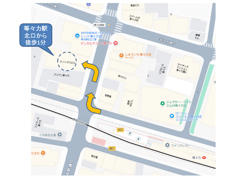 1. 等々力駅北口改札を出て、左方向へ進みます。